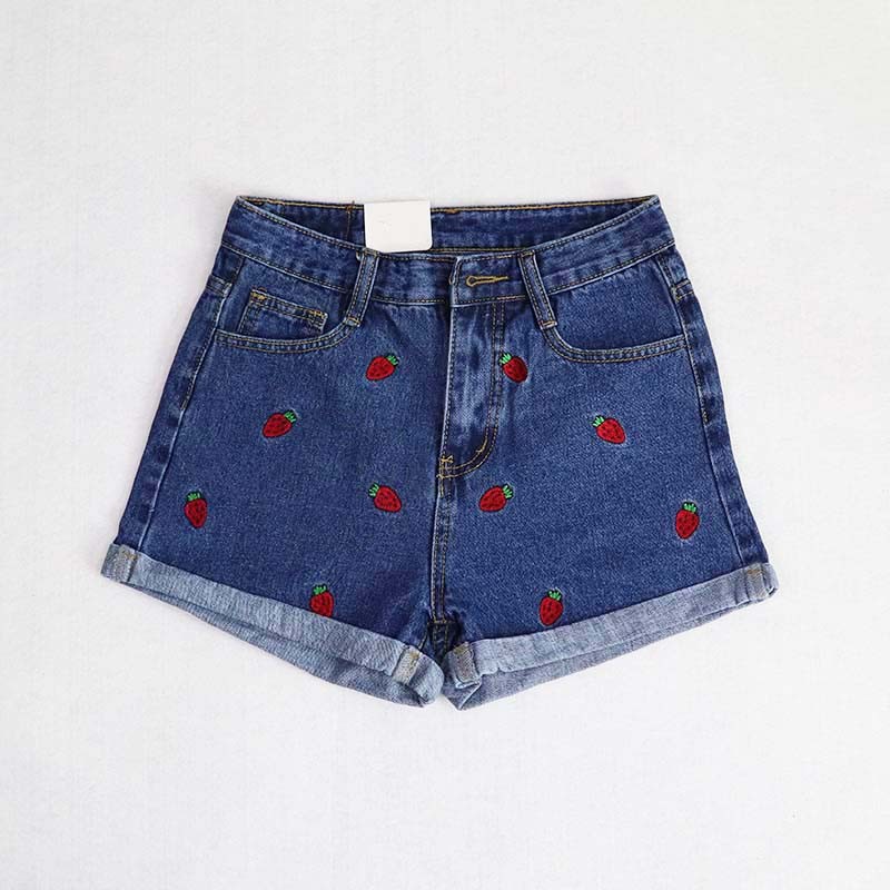 Pantaloni corti in denim da donna con coccinelle J1084