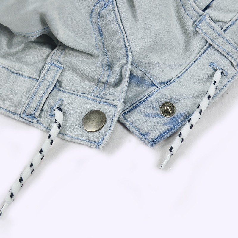 Bellissimi pantaloni corti in denim, che si chiudono non solo con un bottone, ma anche con dei lacci.