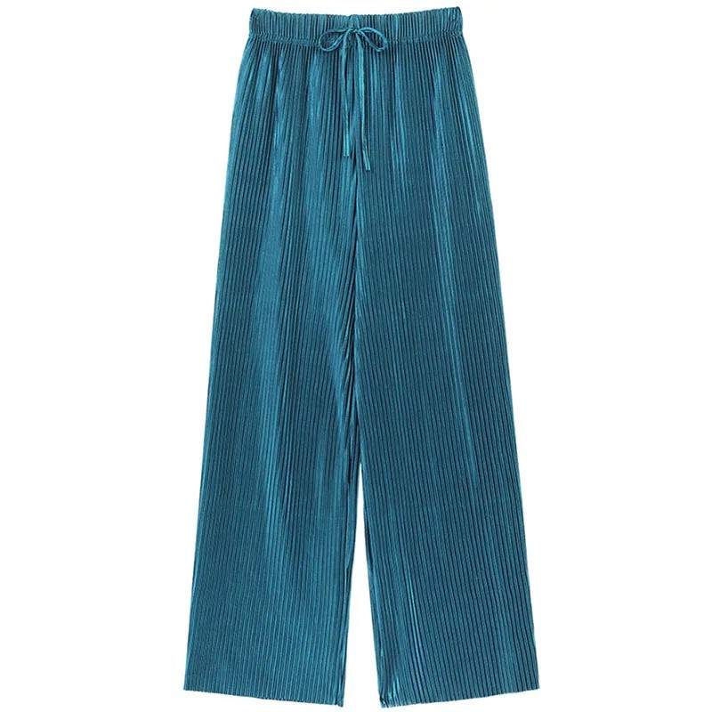 Pantaloni estivi leggeri a palazzo con un aspetto in chiffon e vita elastica sono la scelta ideale per un outfit comodo e alla moda. Descrizione completa
