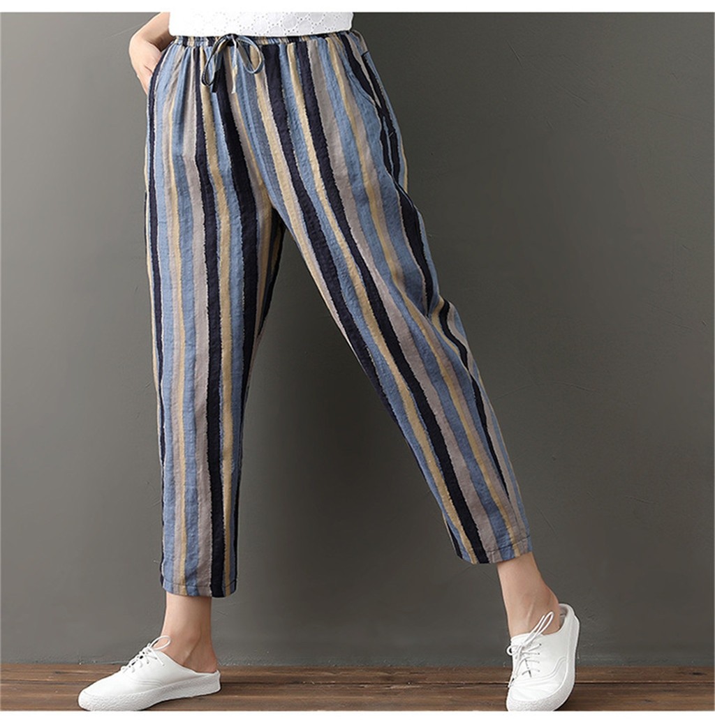 Pantaloni larghi a righe da donna