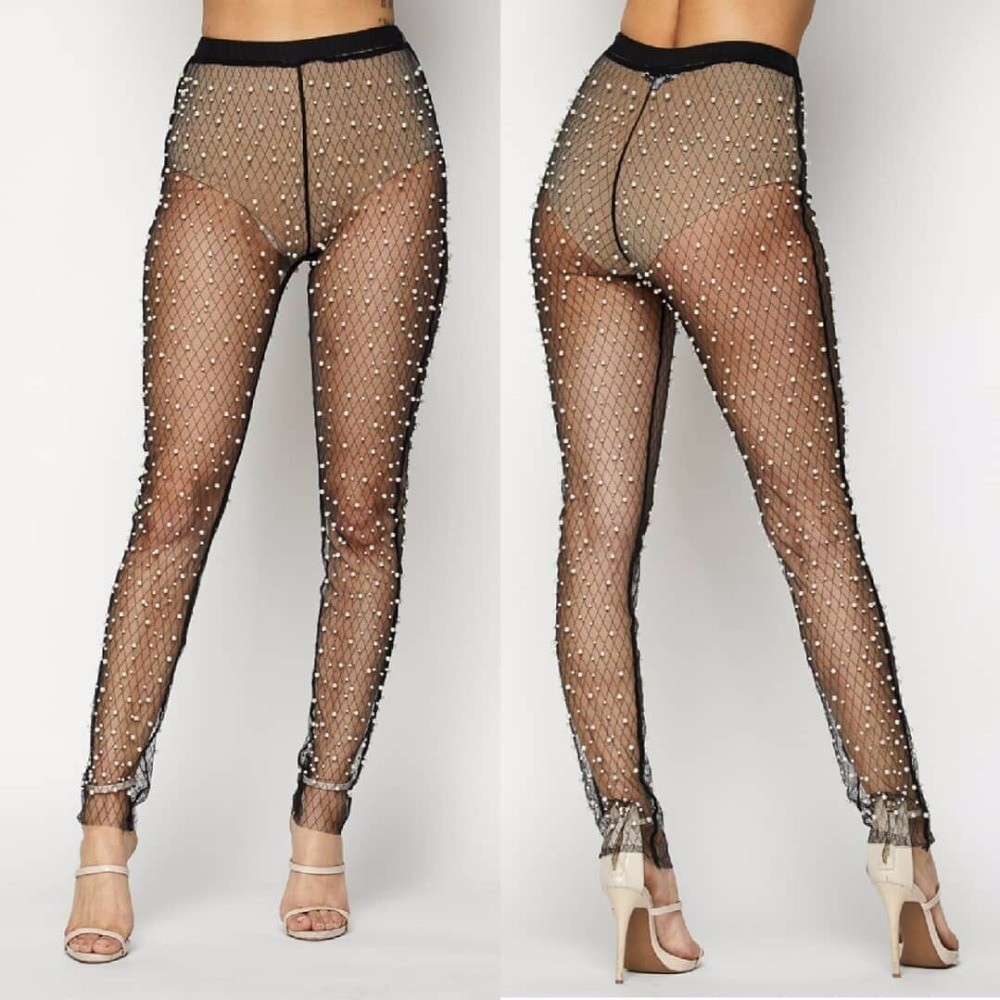 Pantaloni trasparenti da donna con perle