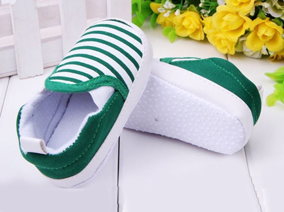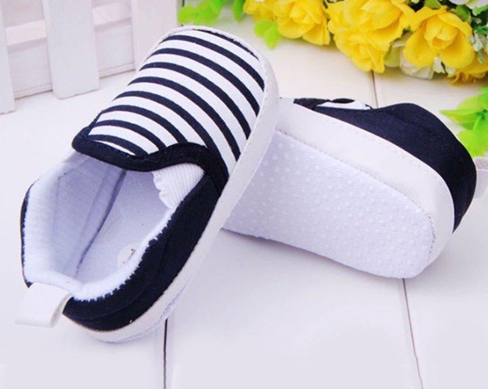Le pantofole a righe per bambini sono un'ottima scelta per i neonati che non camminano ancora.