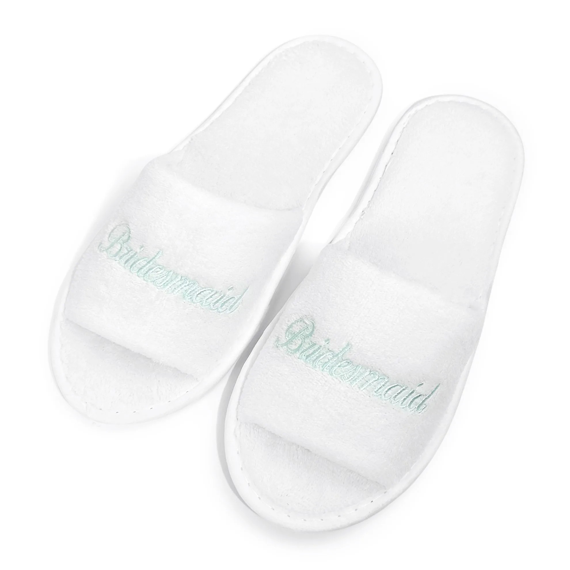Pantofole comode con ricamo per la damigella, ideali per l'addio al nubilato, i preparativi per il matrimonio e le foto di gruppo. Descrizione completa