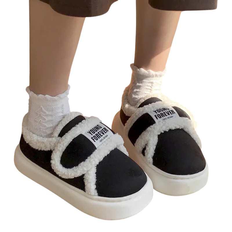 Queste pantofole invernali da donna con pelliccia interna combinano un aspetto elegante e una realizzazione pratica per l'uso quotidiano durante la stagione fredda. La morbida pelliccia interna mantiene il calore, mentre la suola rigida assicura un passo stabile e sicuro su ogni superficie. Grazie alla chiusura con velcro, sono facili da indossare e togliere. Le pantofole sono progettate con attenzione al comfort e hanno un design moderno con una scritta evidente che conferisce loro un tocco di stile. Adatte come calzature da casa.