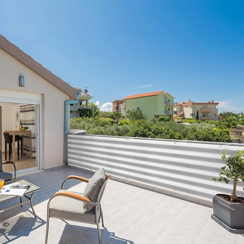 Contenuto della confezione: 1x paravento per balcone, 14x fascetta di fissaggio, 1x corda in nylon