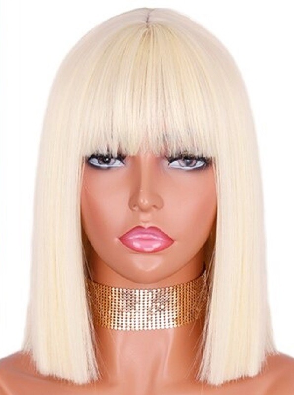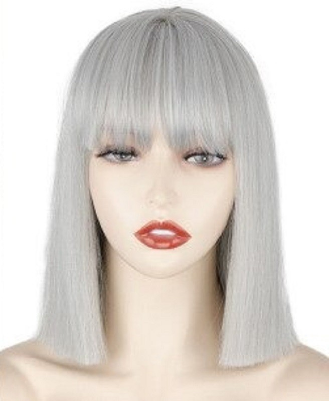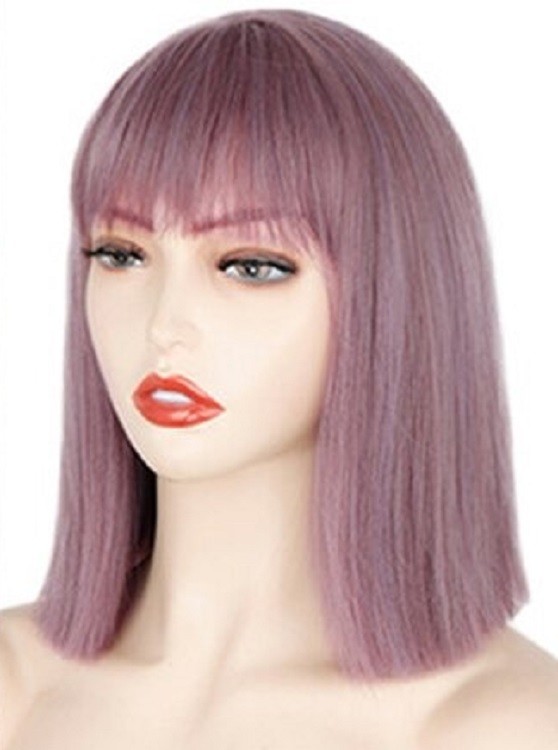Parrucca dritta da donna con frangia. La parrucca può essere indossata ovunque grazie al suo aspetto naturale. Realizzata in fibre sintetiche di alta qualità e per questo è resistente alla rottura e alle doppie punte. Comoda da indossare. Può essere lavata con shampoo e laccata.
