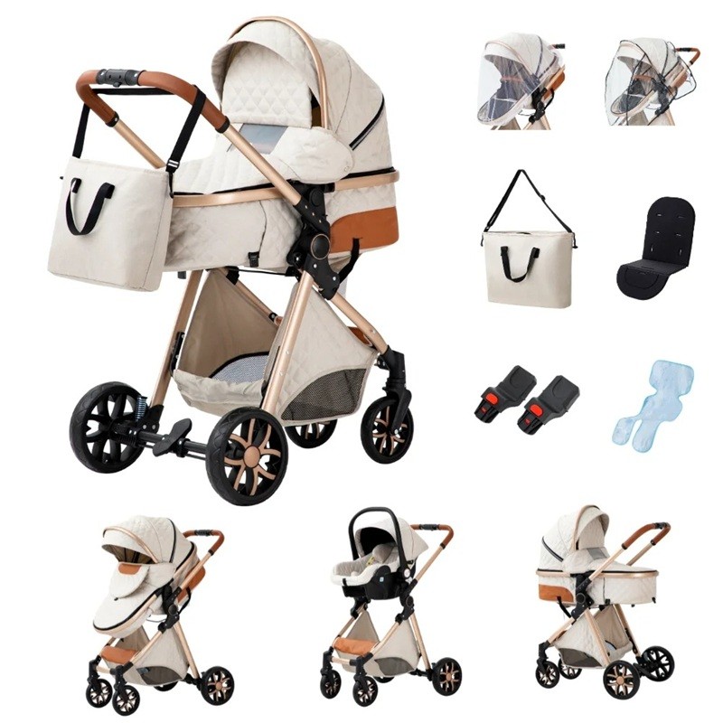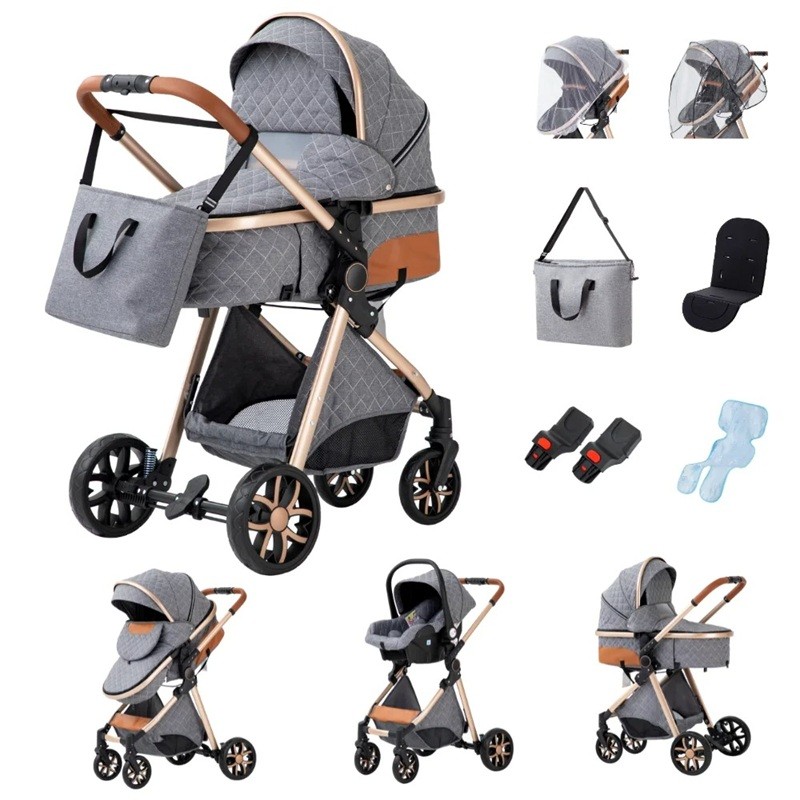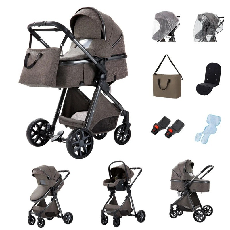 Passeggino 3 in 1 con navetta e seggiolino auto, struttura pieghevole, cotone, per il trasporto quotidiano del bambino