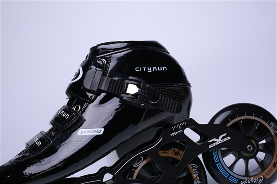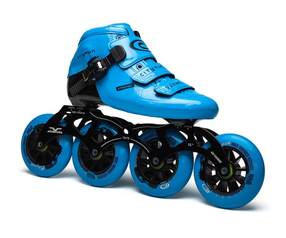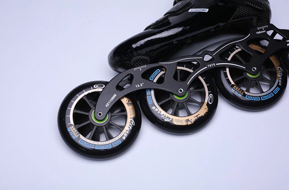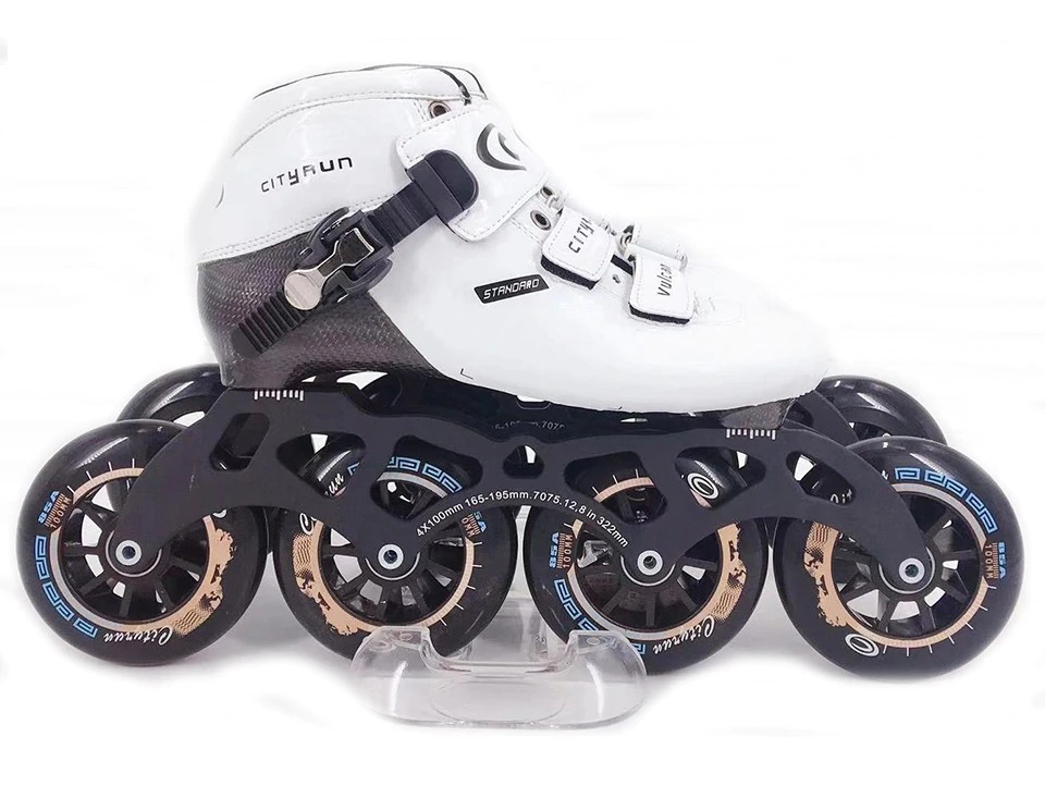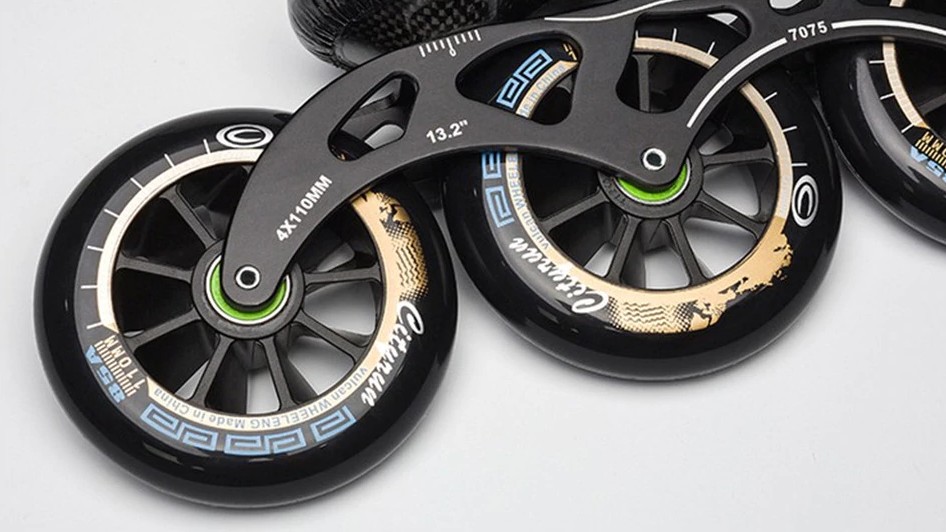 Questi pattini speed con grandi ruote sono progettati per il pattinaggio veloce.