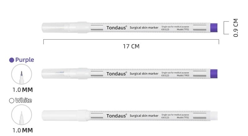 Penna per la marcatura della pelle 17 cm Bianco o viola Penna fine con punta da 1 mm per tatuaggi e modellatura cosmetica La penna per la marcatura della pelle è uno strumento pratico progettato per tracciare linee e forme in modo preciso durante le modifiche estetiche e decorative. Serve per marcare le sopracciglia, le labbra o la pelle prima del tatuaggio, o durante altre tecniche creative in cui è necessaria una guida chiara e controllata. Grazie alla punta fine, consente un lavoro preciso anche nei dettagli. La penna ha una lunghezza di circa