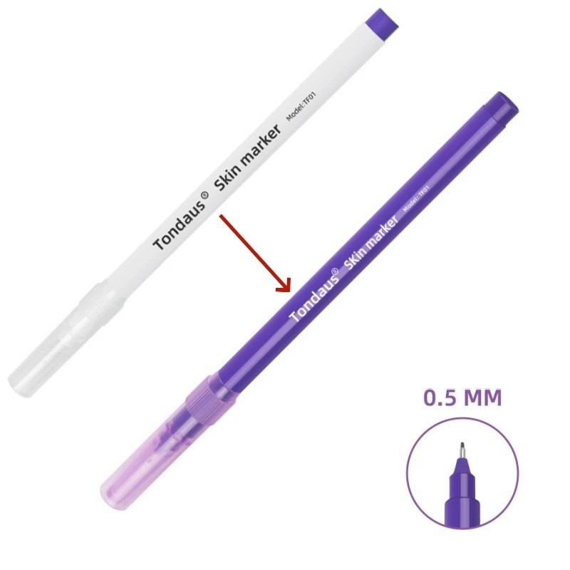 Il colore viola garantisce una buona visibilità sulla pelle e facilita il controllo della forma durante tutto il lavoro. La costruzione della penna è leggera ed ergonomica, permettendo una presa comoda anche durante un uso prolungato. L'attuale versione della penna è di colore viola. Il colore della penna è destinato a una marcatura temporanea sulla pelle e può essere facilmente rimosso dopo l'uso con comuni detergenti per la pelle.