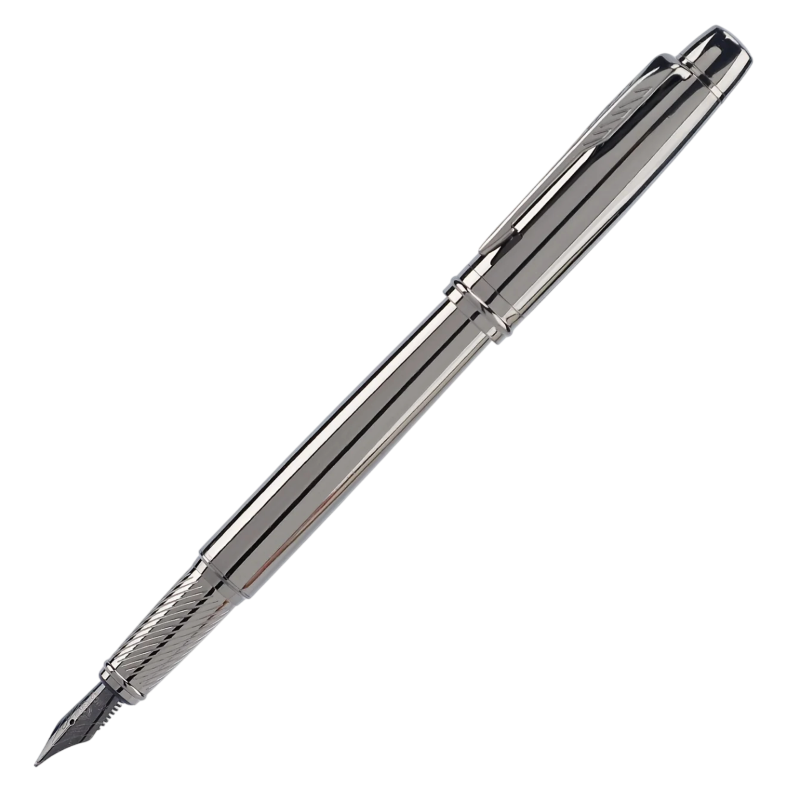 La penna stilografica in metallo di colore grigio argento è progettata per la scrittura quotidiana e per l'uso in ufficio. Grazie alla sua lunghezza e costruzione, offre una presa stabile e un utilizzo confortevole durante vari tipi di scrittura. È adatta sia per l'ambiente scolastico che per l'uso lavorativo.