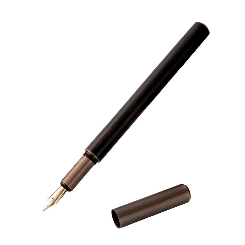 Penna stilografica elegante con punta da 0,5 mm adatta per la scrittura quotidiana e la calligrafia. Finitura in legno e bronzo per un utilizzo confortevole. Descrizione completa