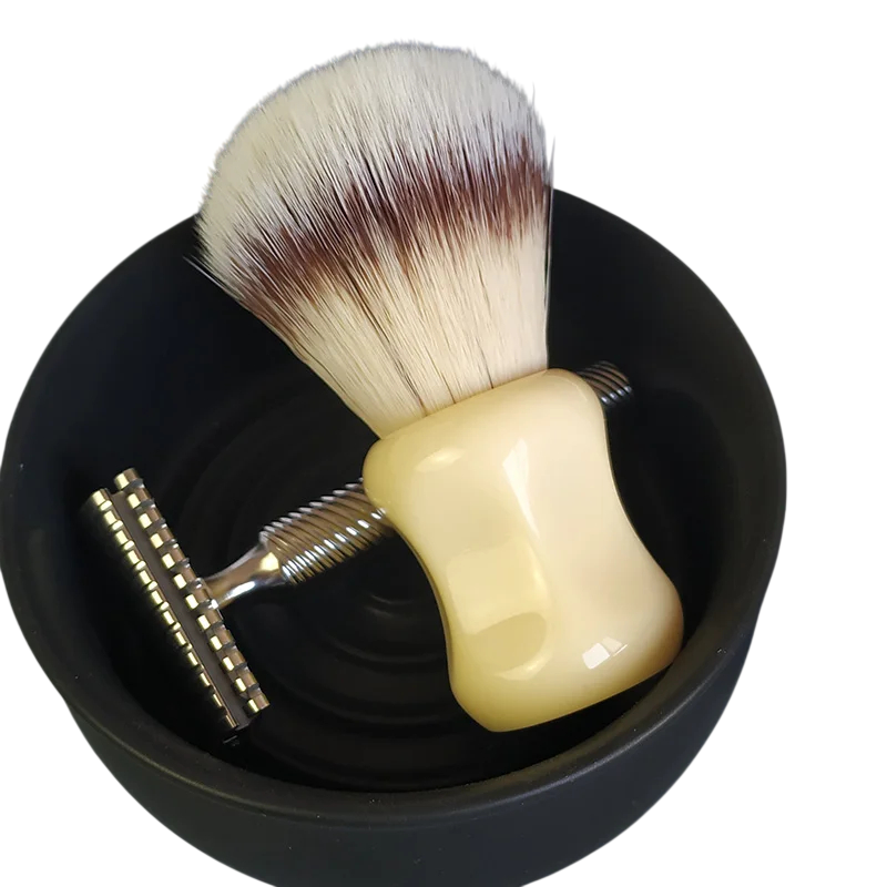La rasatura a umido classica è simbolo di cura precisa dell'aspetto e un buon pennello da barba è uno dei suoi strumenti più importanti. Grazie alle moderne setole sintetiche, riesce a creare rapidamente una schiuma ricca e ad applicarla uniformemente sul viso. Le setole morbide sono delicate sulla pelle e sollevano efficacemente la barba per una rasatura più facile. Il manico ergonomico in resina si adatta bene alla mano e garantisce una manipolazione stabile. Il pennello è adatto sia per principianti che per esperti amanti della rasatura tradizionale.