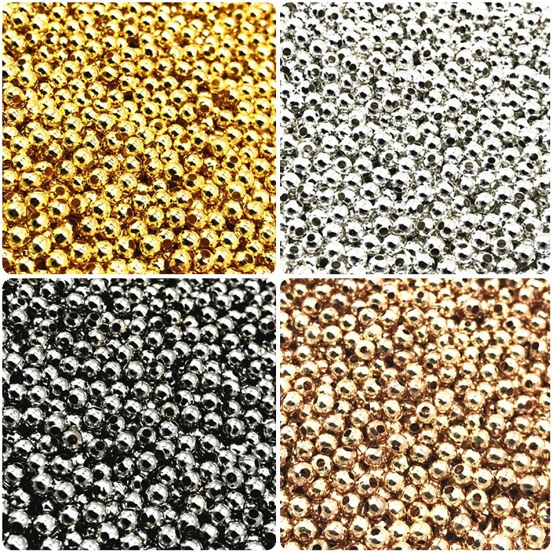 Perline da infilare. Perline metalliche. Diametro 2 mm. Descrizione completa