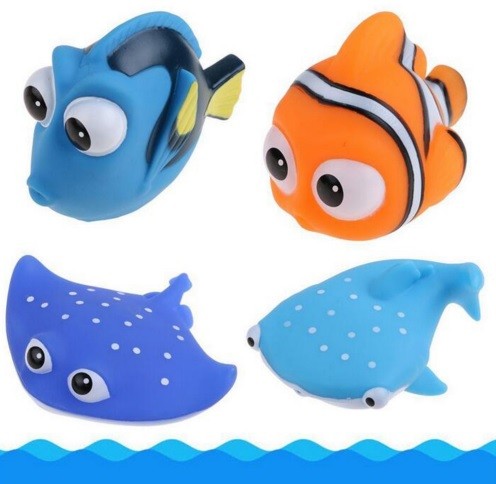 I pesci spruzzano acqua quando si preme il corpo. Divertiti un mondo.