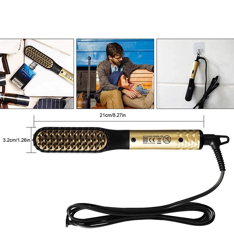 Pagina iniziale Pagina iniziale Salute e bellezza Capelli Spazzole ad aria calda Pettine elettrico riscaldato per capelli e barba da uomo 25W Piastra a ioni negativi Spazzola per capelli bagnati e asciutti Styling veloce spina EU