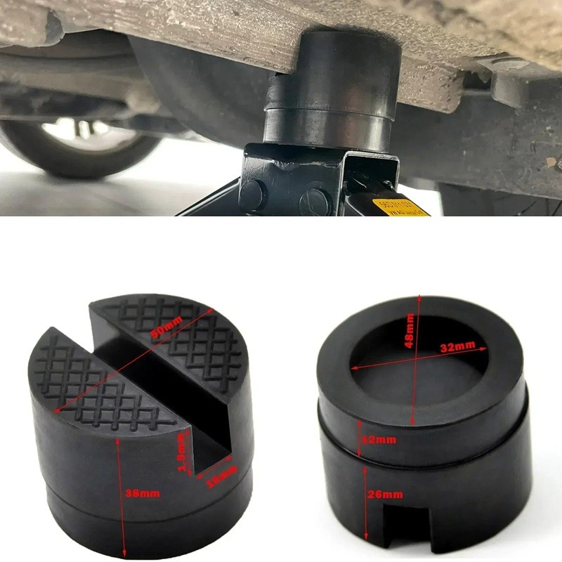 Piastra di gomma universale per sollevatore auto con diametro di 50 mm e altezza di 33 mm, protegge il telaio dell'auto durante il sollevamento, colore nero. Descrizione completa