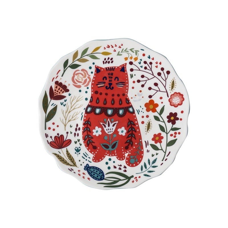 Piatto con gatto e ornamenti