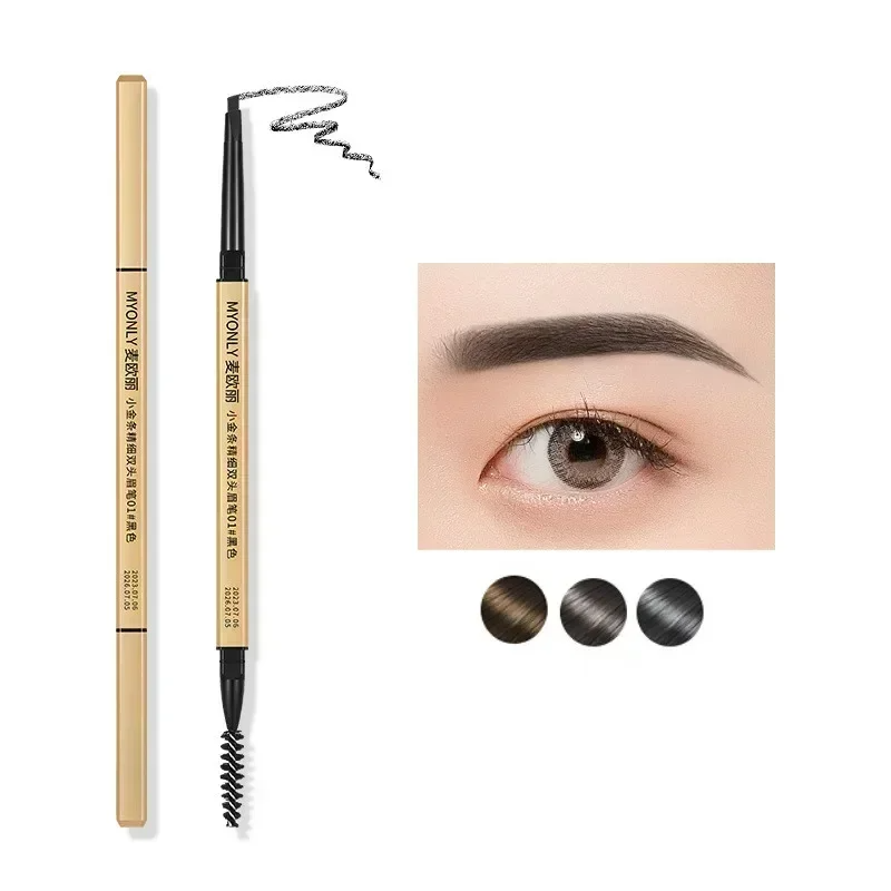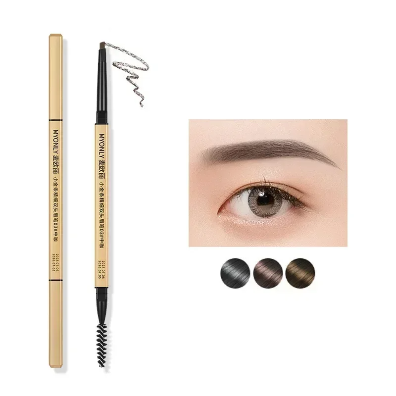 Piccola matita dorata per sopracciglia Waterproof e resistente al sudore Lunga durata Ultra sottile matita di precisione Spazzolino per la definizione delle sopracciglia