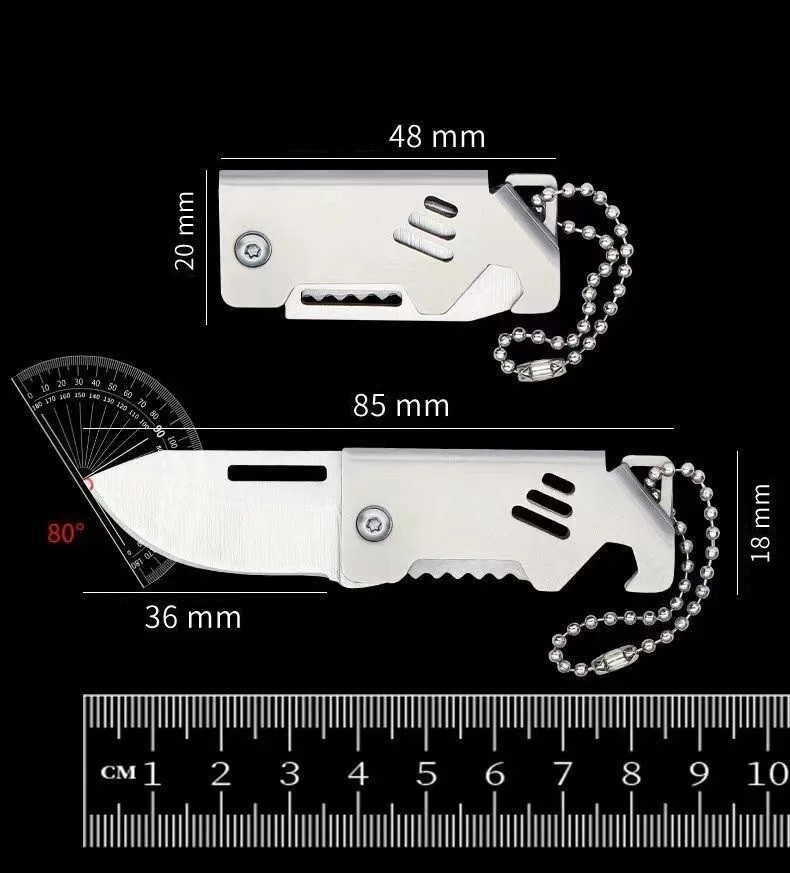 Coltello mini compatto in acciaio inossidabile con portachiavi. Ideale come portachiavi per uso quotidiano, gite, attività all'aperto o viaggi. Descrizione completa