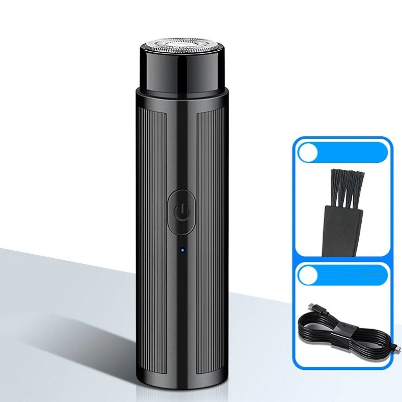 Piccolo rasoio elettrico per uomini e donne Rasoio portatile con testa rotante in acciaio inossidabile Rasoio da viaggio ricaricabile con indicatore di batteria 9,2 x 2,2 cm