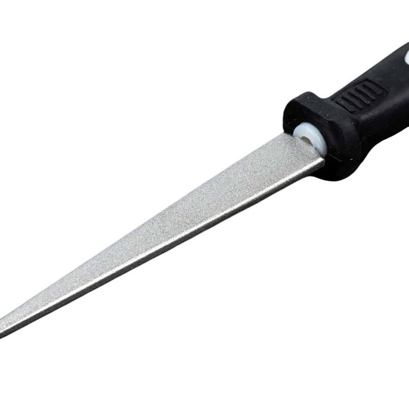 Affilatore diamantato universale con manico ergonomico, profilo su entrambi i lati e facile utilizzo per coltelli, forbici e attrezzi da giardino. Descrizione completa