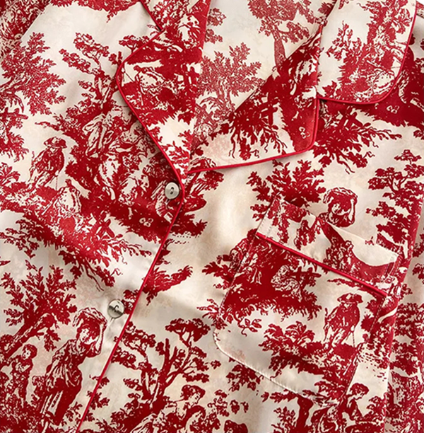 Questo completo pigiama da donna è progettato per donne che cercano comfort senza compromessi sull'eleganza. Il materiale leggero e traspirante in poliestere e rayon offre comfort notturno e una sensazione di freschezza. I motivi rossi su sfondo bianco conferiscono al modello un tocco romantico e moderno, che ravviva il tuo guardaroba. La camicia a maniche corte e con bottoni u