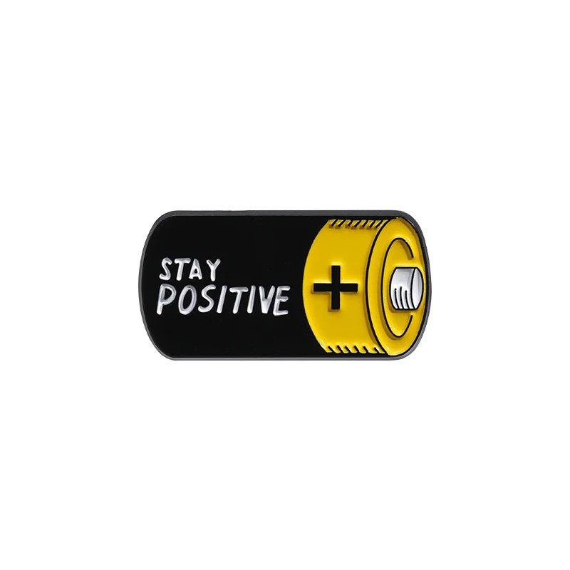 • Pin smaltato a forma di batteria con la scritta Stay Positive