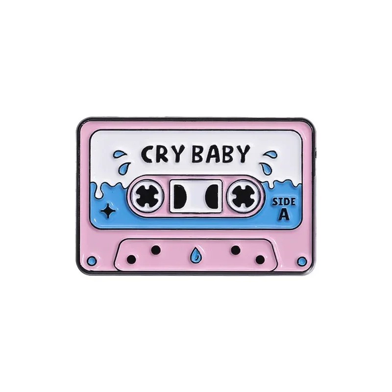 Pin smaltato a forma di cassetta musicale Cry Baby spilla metallica rosa-blu retro distintivo per giacca zaino borsa abbigliamento con motivo di lacrime