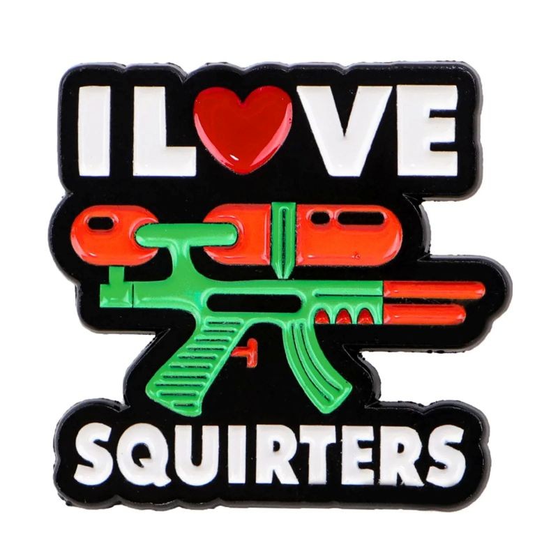 Spilla in metallo smaltata con scritta e motivo colorato, ideale per zaino o abbigliamento. Accessorio pratico di dimensioni circa 3,2 × 3 cm. Descrizione completa
