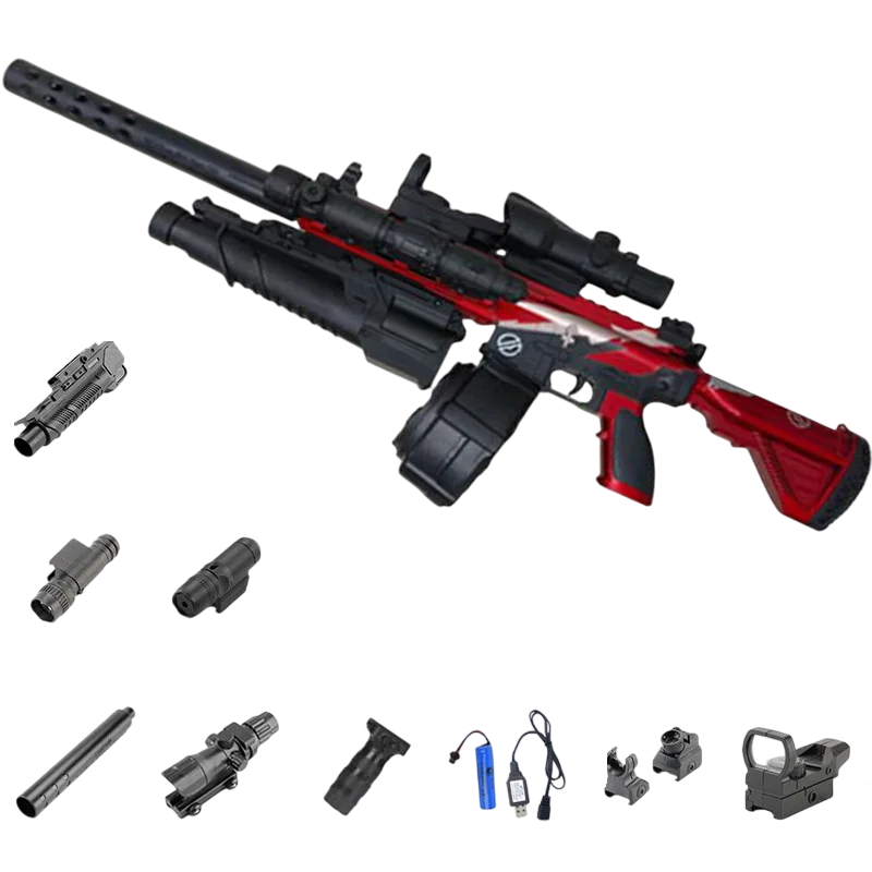 Pistola airsoft elettrica per pallini di gel 85 cm Arma per bambini con mirino, silenziatore, torcia e mirino infrarosso