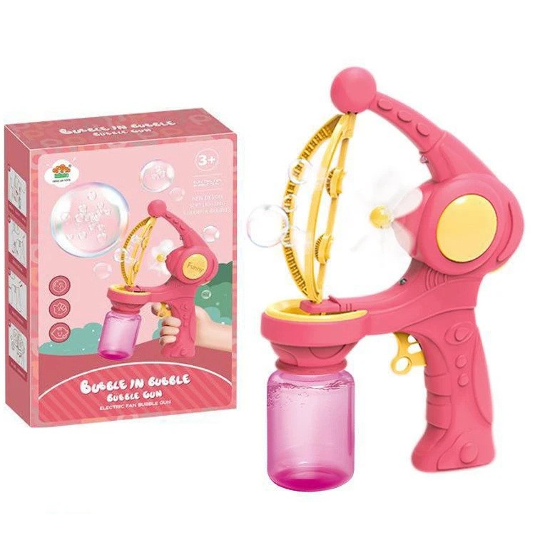 Pistola elettrica per bolle sicura in plastica ABS con lunga durata e facile da usare. Adatta per divertimento al chiuso e all'aperto. Descrizione completa