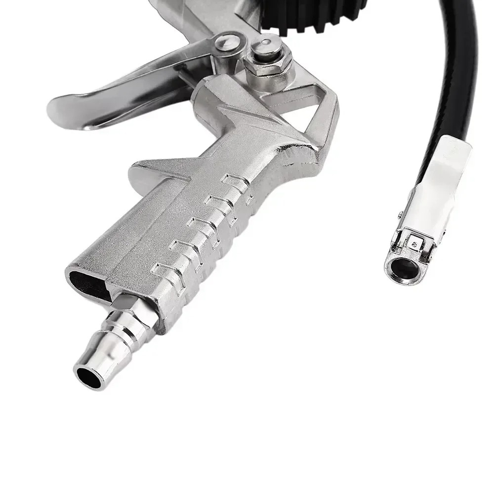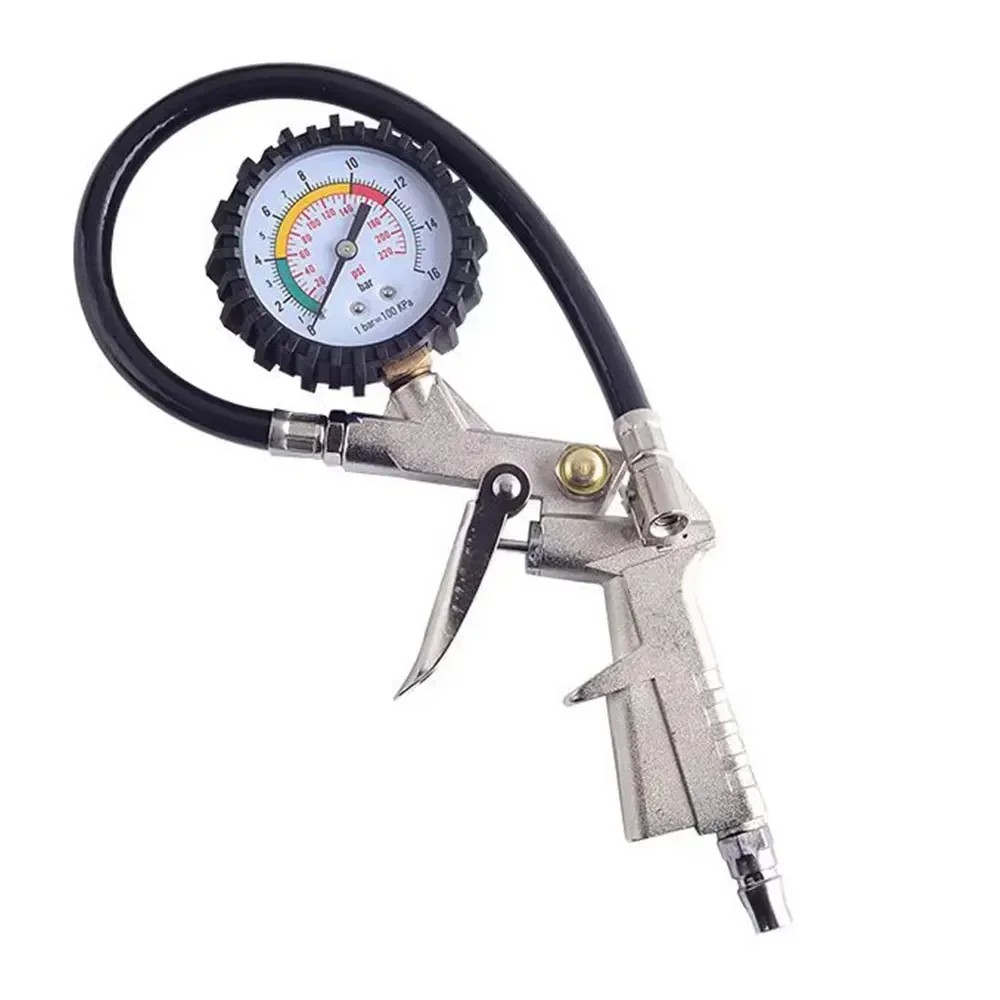 Pistola manometrica robusta per misurazioni precise e gonfiaggio dei pneumatici di auto, motociclette e SUV. Adatta per il collegamento a un compressore. Descrizione completa