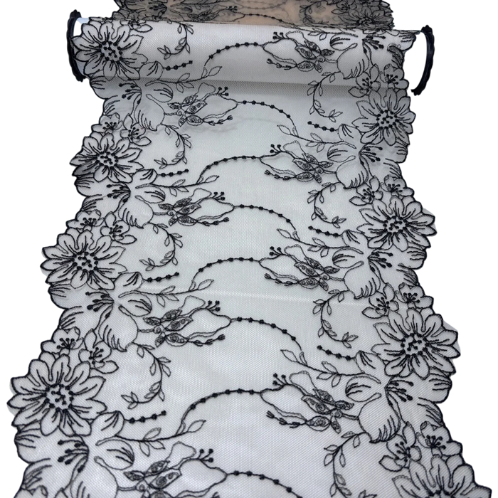 Pizzo ricamato in rete 21 x 91 cm Pizzo in poliestere con motivo floreale Tessuto decorativo per cucire abbigliamento decorazioni DIY