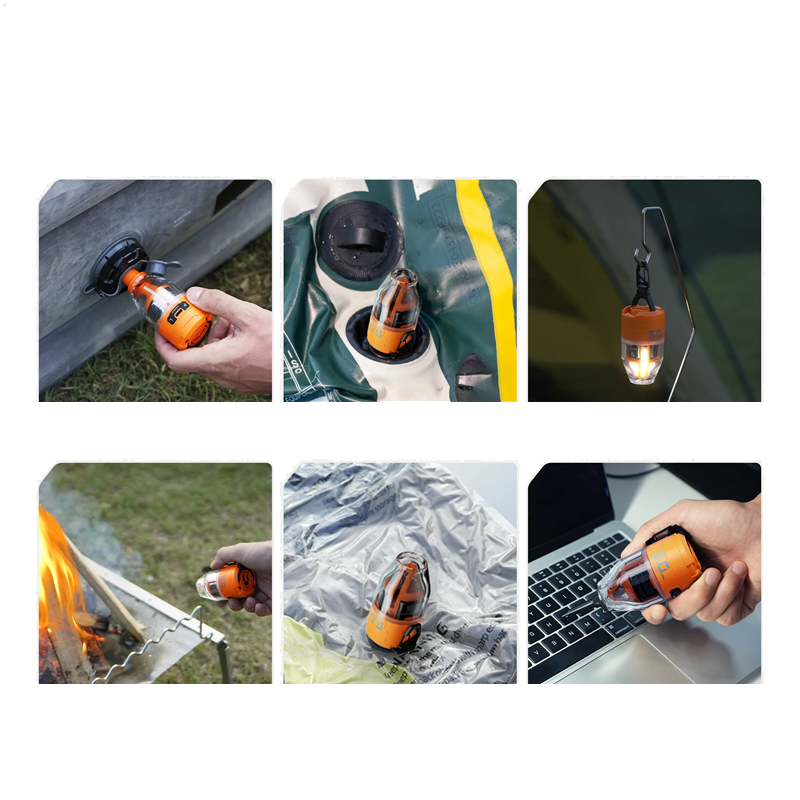 Questa pompa da campeggio portatile è la soluzione ideale per chi cerca un dispositivo leggero, potente e multifunzionale per i viaggi. Grazie al forte flusso d'aria di 500 litri al minuto, riesce a gonfiare rapidamente materassi, cuscini o attrezzature da campeggio. Nella confezione sono inclusi 6 diversi ugelli, che consentono un ampio utilizzo. Inoltre, ha un'illuminazione ambientale integrata con tre livelli di luminosità (100/200/300 lm), quindi può essere utilizzata anche come lampada da notte. Il suo design compatto e il peso ridotto di 122 g la rendono un compagno perfetto per i viaggi.
