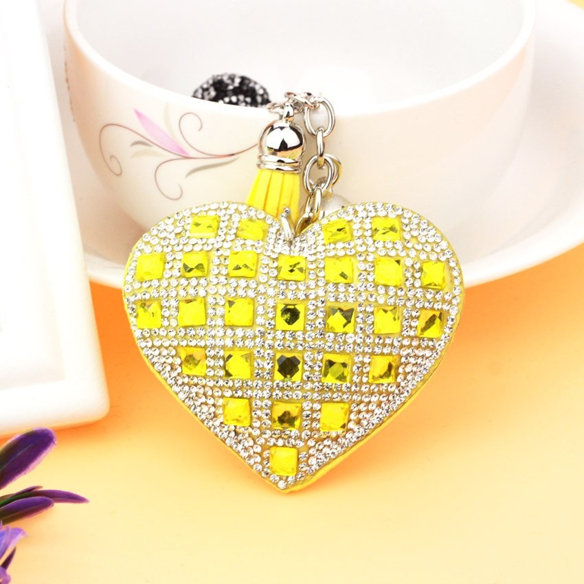 Portachiavi in pelle a forma di cuore decorato con pietre scintillanti farà felice ogni donna.