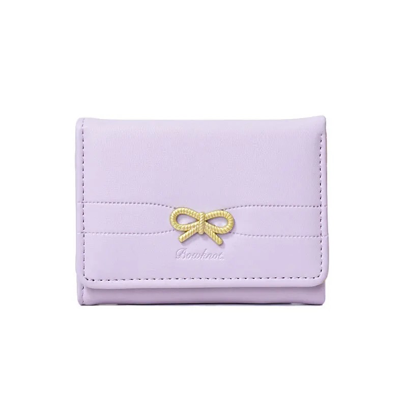 Portafoglio da donna 11 x 8 x 2 cm con fiocchetto Superficie trapuntata Pelle sintetica morbida e fine Design compatto ed elegante