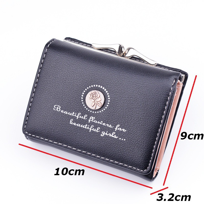 Questo bellissimo portafoglio con una piccola rosa al centro non può mancare in nessuna borsa femminile.