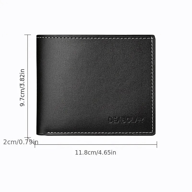 Portafoglio da uomo stiloso in PU pelle con disposizione pratica per carte, contante e documenti, ideale per tasche o borse. Descrizione completa