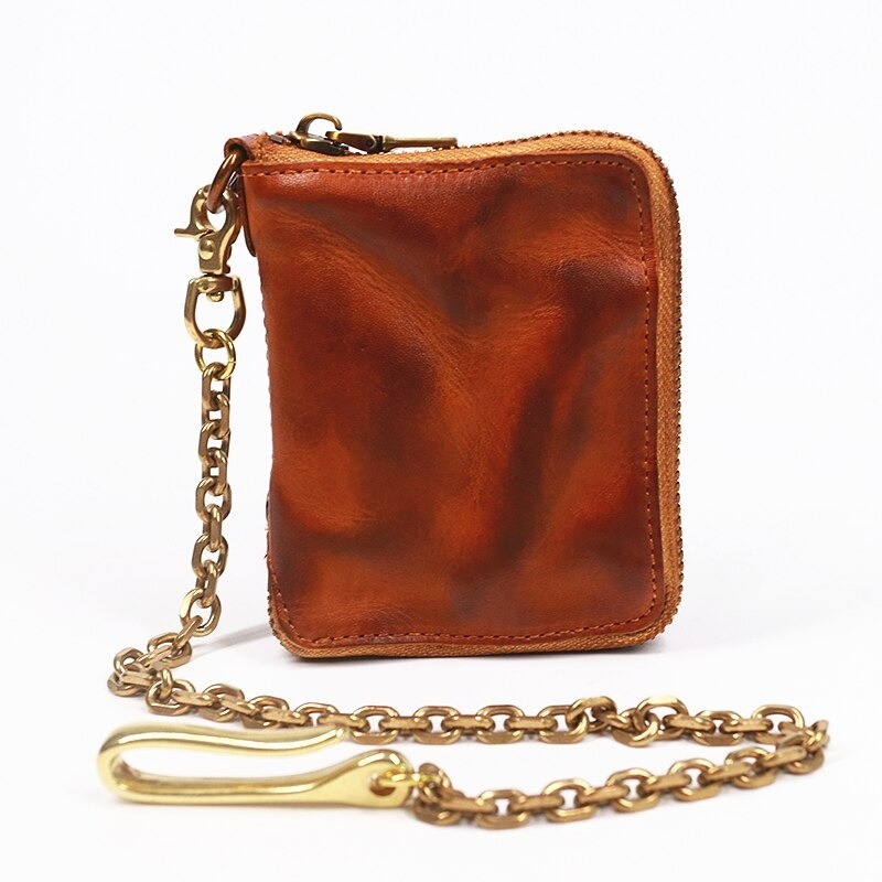 Portafoglio da uomo in pelle piccolo con catena