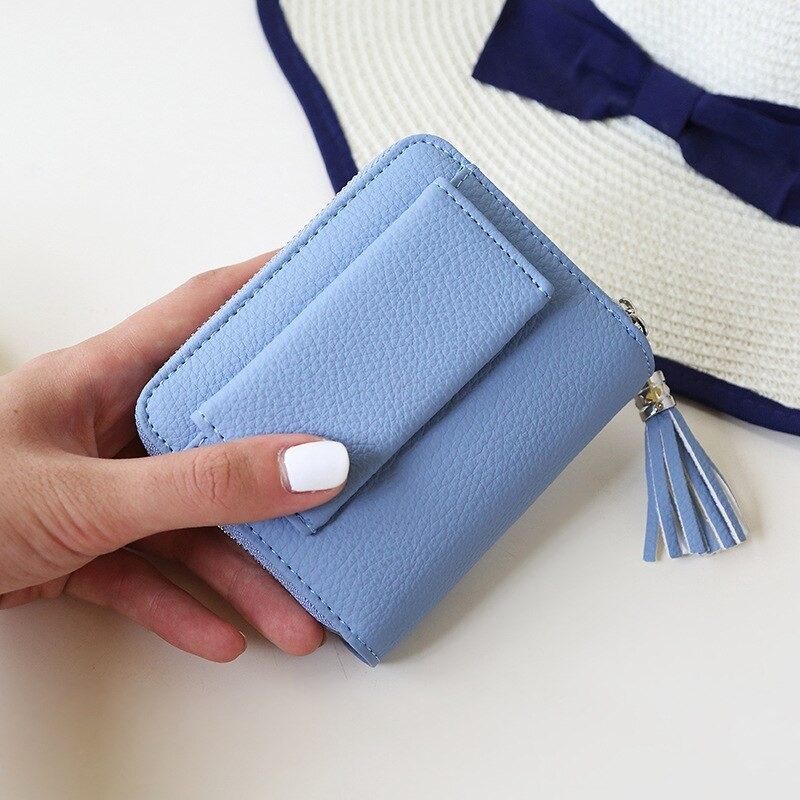 Portafoglio in pelle da donna piccolo con frangia