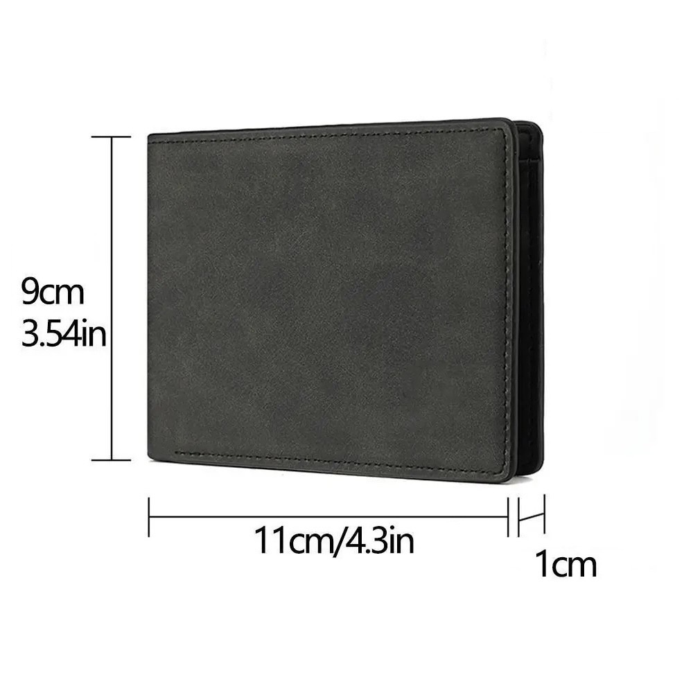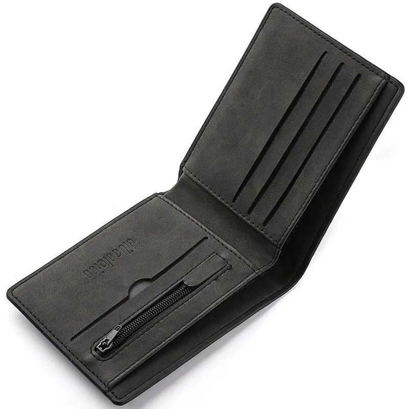 Portafoglio maschile compatto in PU con tasca con zip, adatto per carte, contante e monete, ideale per l'uso quotidiano. Descrizione completa