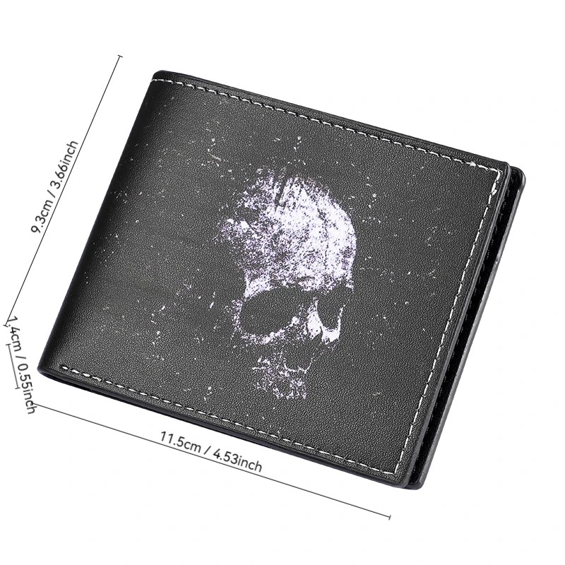 Pagina iniziale Pagina iniziale Borse, zaini e portafogli Borse a tracolla, zaini e portafogli da uomo Portafogli da uomo Portafoglio pieghevole con teschio 11,5 x 9,3 x 1,4 cm Polivinile Design compatto Portafoglio per carte, banconote e monete