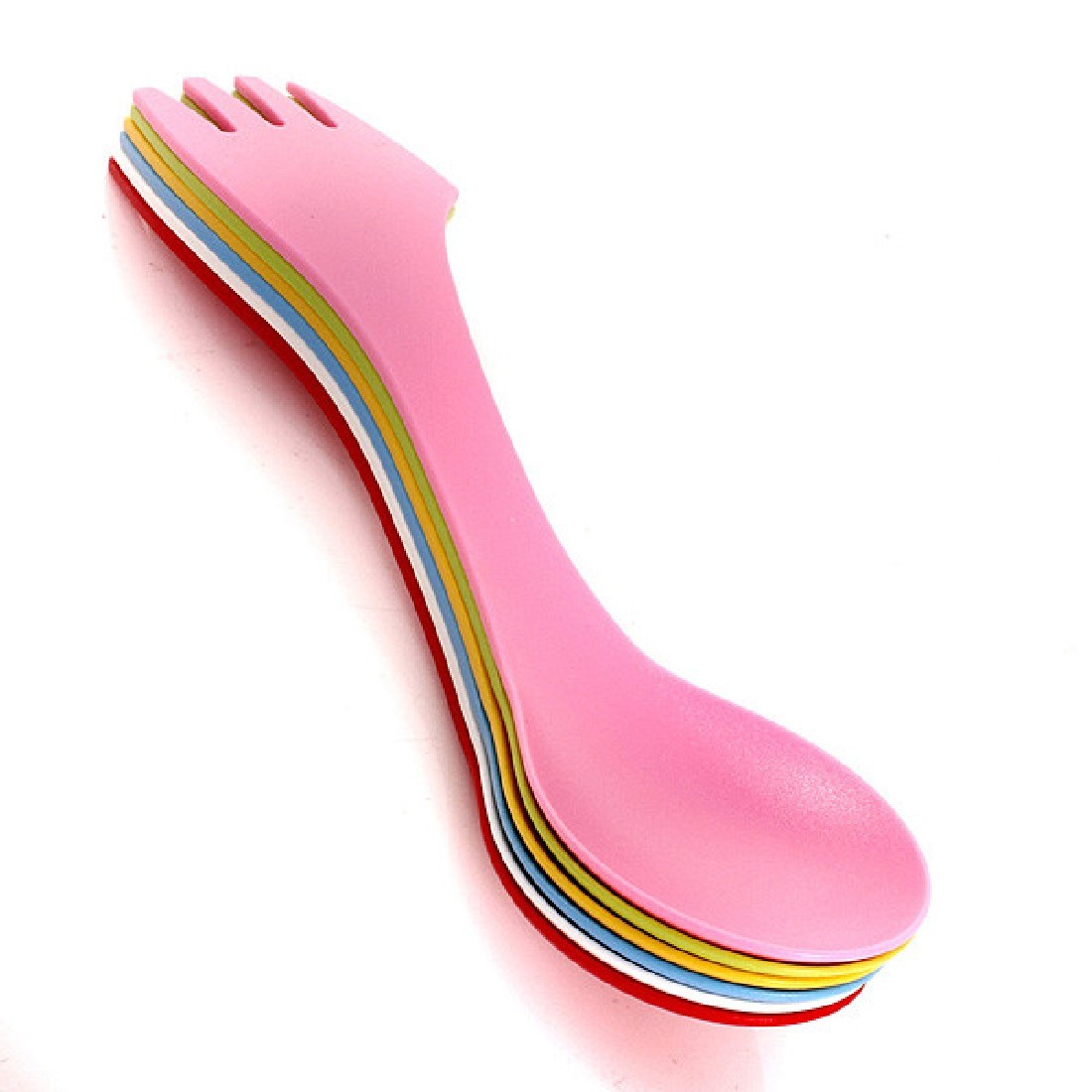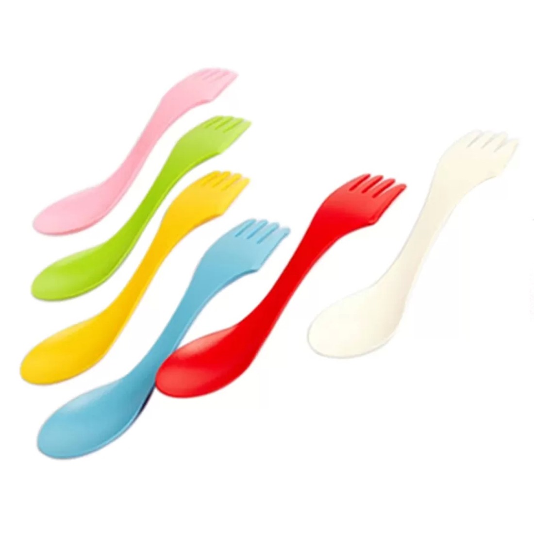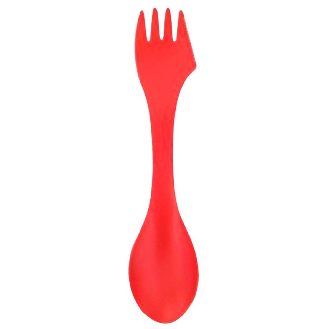 Pratica attrezzatura per viaggi o campeggio - forchetta, coltello e cucchiaio in uno.