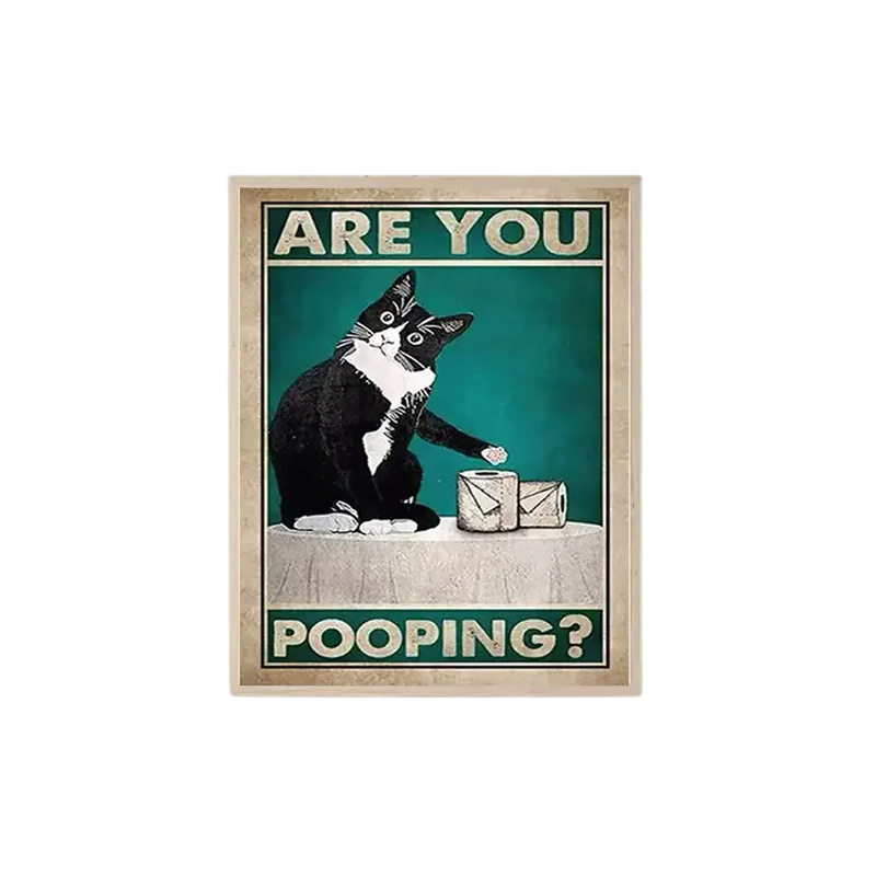 Questo originale poster retro con il motivo di una gatta bianco e nera e la scritta divertente „Are You Pooping?“ darà a ogni bagno o WC un carattere unico. L'illustrazione combina la dolcezza del motivo animale con un umorismo disinvolto, che farà ridere ogni visitatore. Grazie al formato 30 × 40 cm, si adatta perfettamente anche a spazi più piccoli, dove diventerà un elemento imperdibile. Il poster è stampato su tela di alta qualità con colori vivaci, che dureranno a lungo senza sbiadire. Senza cornice – puoi adattarlo al tuo stile personale oppure fissarlo facilmente con ganci adesivi.