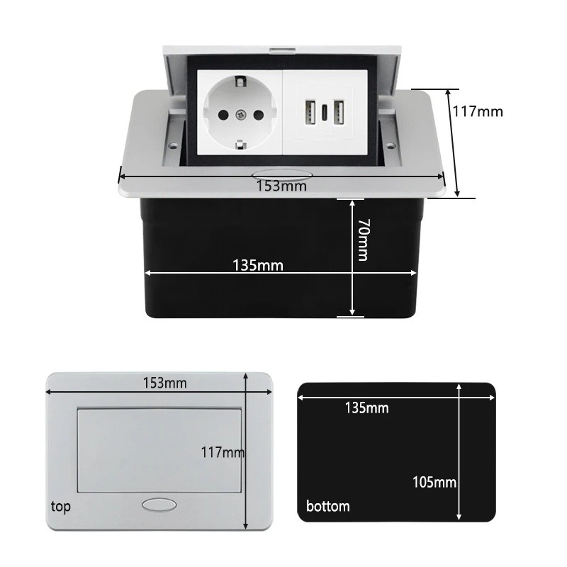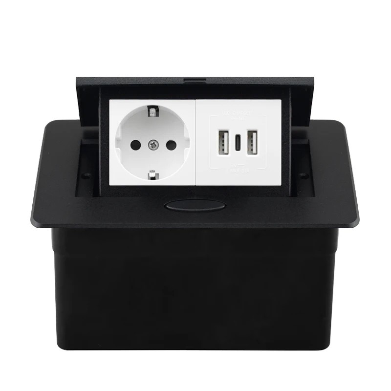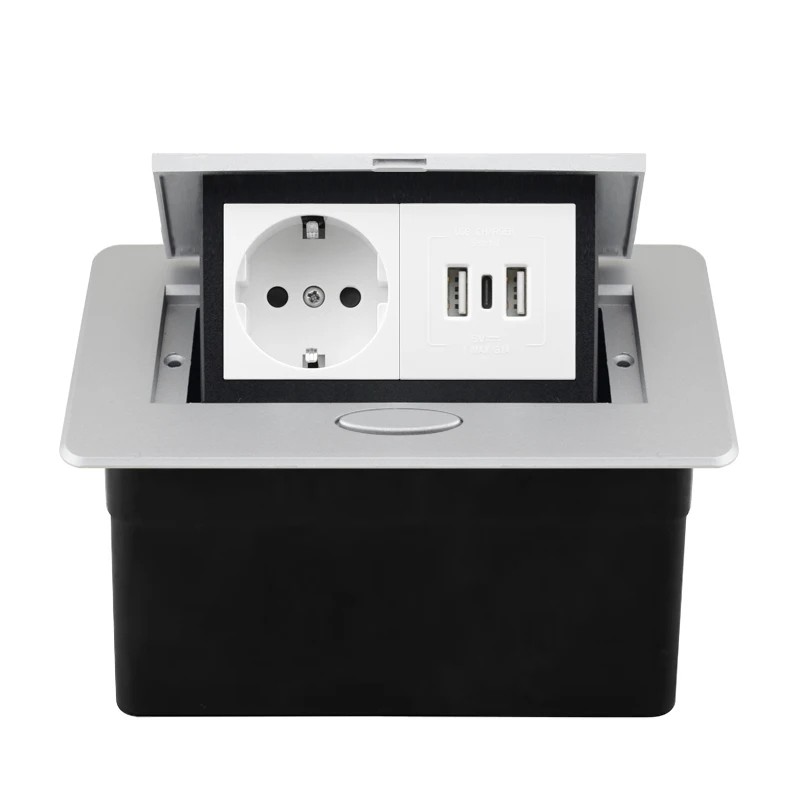 Questa presa è adatta per l'installazione in piani di lavoro, tavoli o cucine. Consente di avere accesso a porte elettriche e USB senza compromettere permanentemente l'aspetto della superficie. La combinazione di più tipi di porte aumenta la sua utilità nell'uso quotidiano. Grazie al meccanismo a scomparsa, lo spazio rimane organizzato e ordinato. La costruzione è progettata per un uso prolungato in ambienti normali.