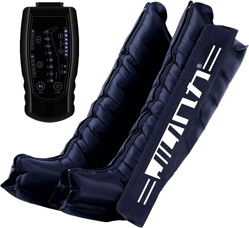 Massaggio muscolare delle gambe con scarpe per alleviare il dolore muscolare. Compressione ad aria con calze per drenaggio linfatico con telecomando. Descrizione completa