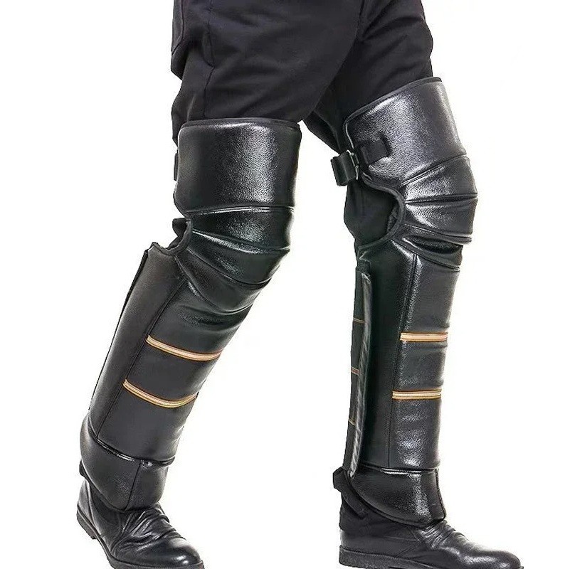 Protezione calda per ginocchia da motocicletta Fodera rinforzata 2 cm in PU pelle con lana artificiale Resistente al vento, al freddo e alla pioggia nera