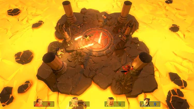 Gioca come vuoi. Pummel Party consente a 1-4 giocatori di competere online o localmente su uno stesso schermo. Che sia online o di persona, è sempre la stessa amicizia che distrugge il divertimento.