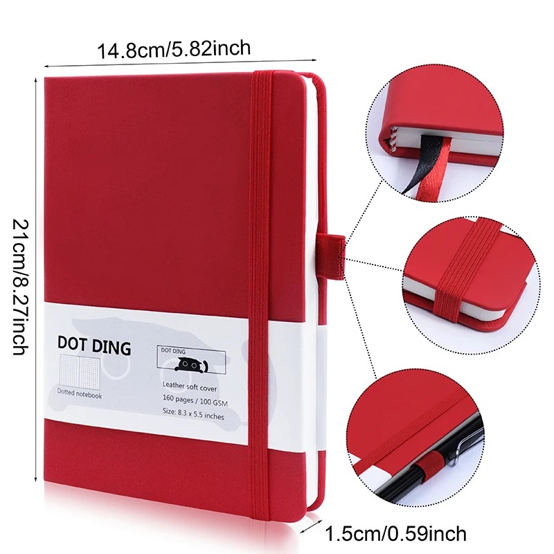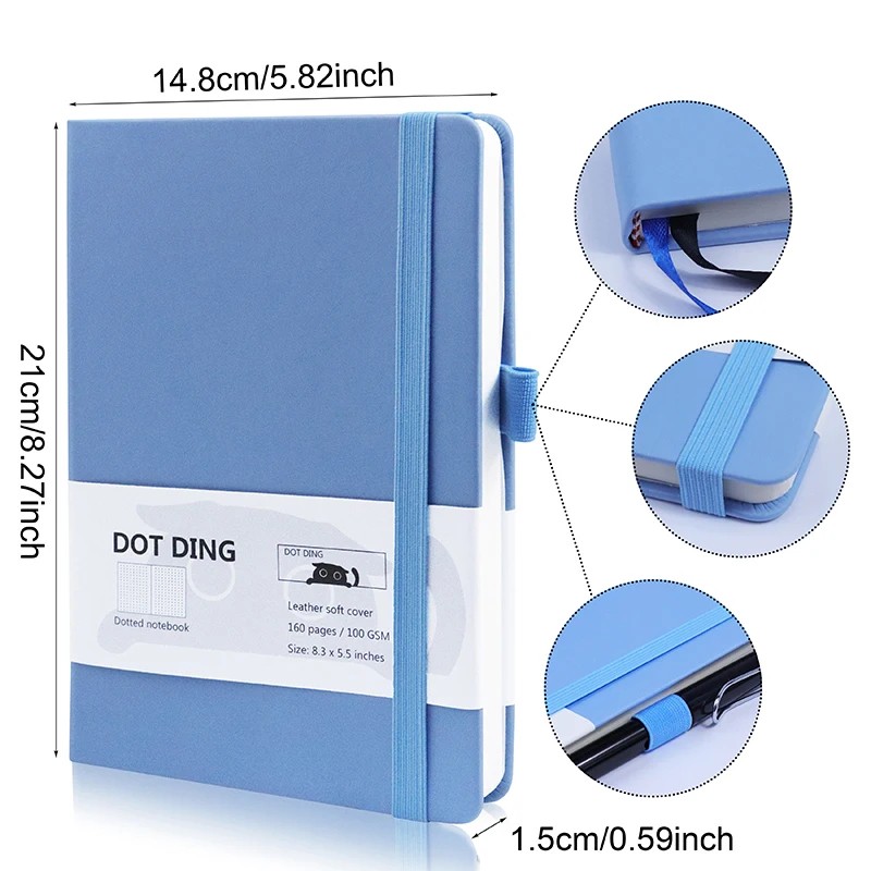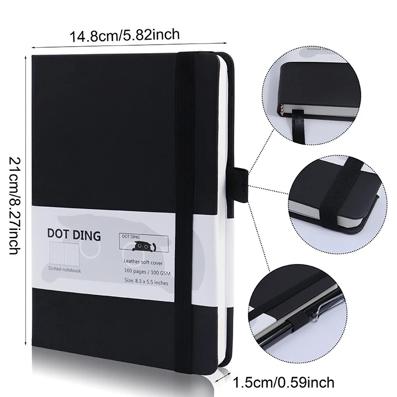 Quaderno a punti 21 x 14,5 cm Quaderno rigido con 160 pagine Adatto per pianificazione, journaling e scrittura creativa Elastico e fermaglio per penna